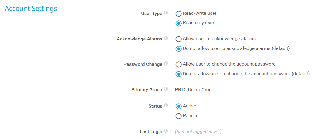 i_round_redUsers are either members of PRTG user groups or of Active Directory groups. They cannot be members of both types of user group. We recommend that you use only one type of user group to minimize administration.