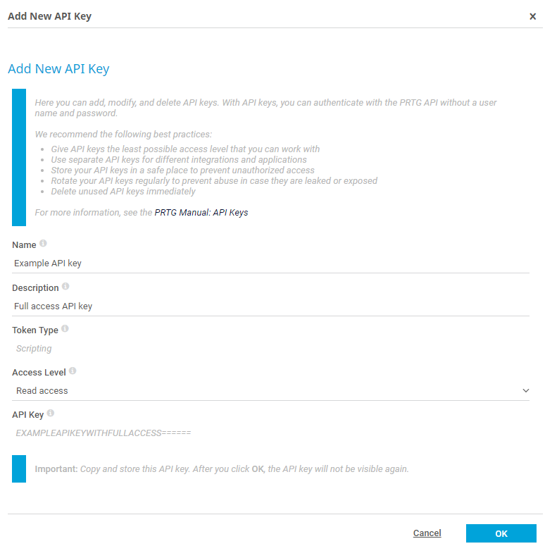 .. PRTG Manual: API Keys