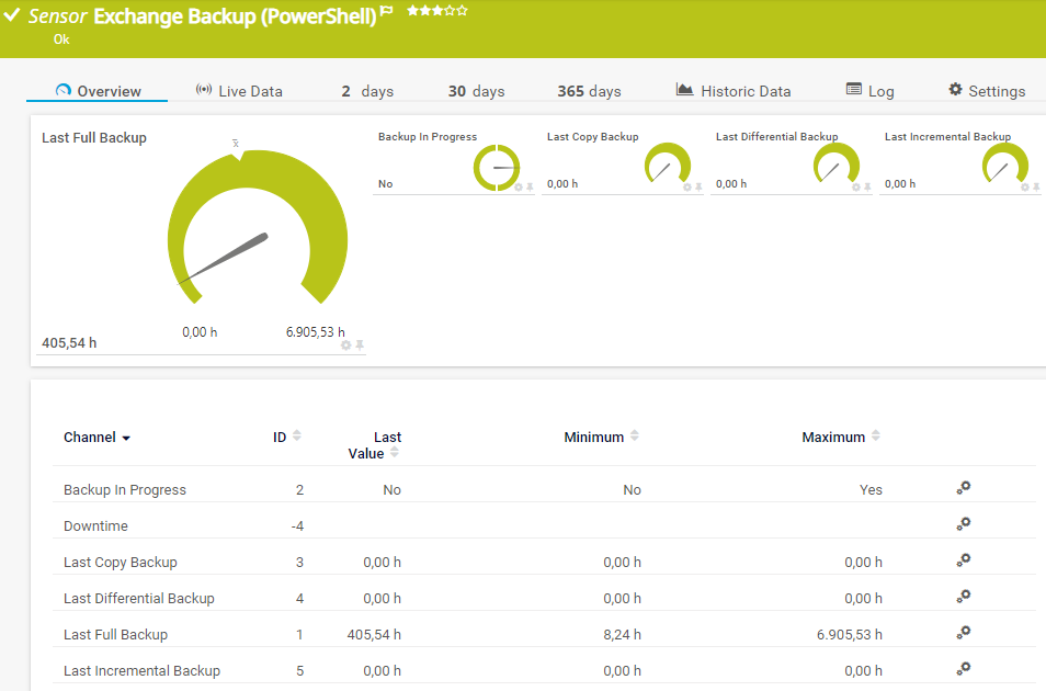 .. PRTG Manual: Exchange Backup (PowerShell) Sensor