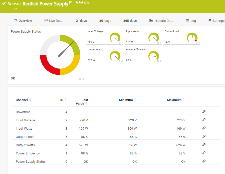 The Redfish Power Supply sensor monitors the power supply of a Redfish Scalable Platforms Management API (Redfish)-capable server.
