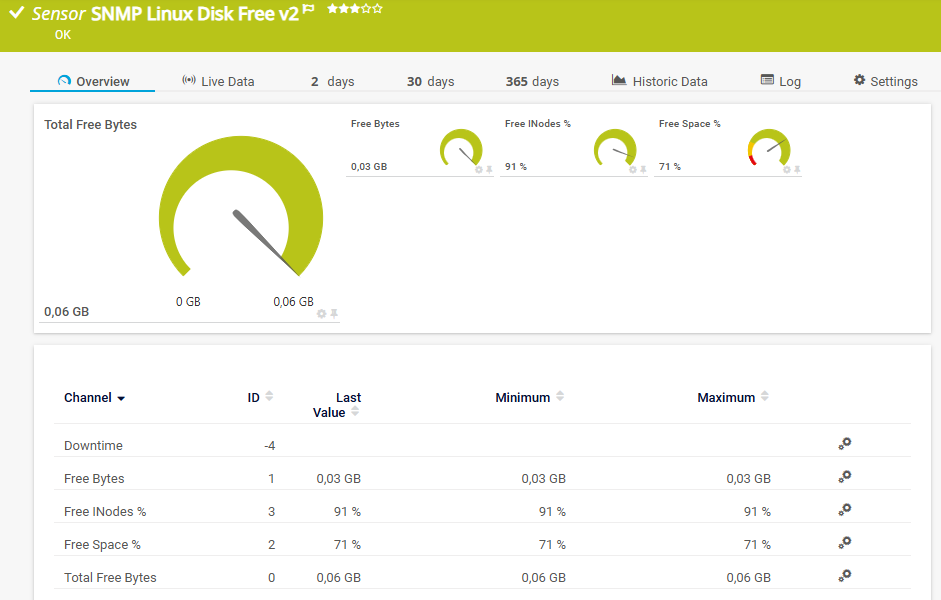 SNMP Linux Disk Free v2 Sensor